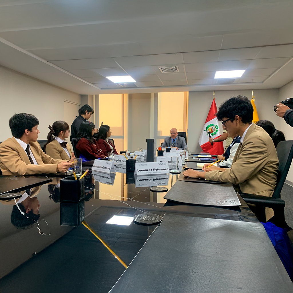 Durante la reunión, nuestros estudiantes tuvieron la valiosa oportunidad de conversar directamente con el alcalde de Santiago de Surco, Carlos Bruce Montes de Oca. Pudieron reflexionar sobre temas de actualidad y compartir sus opiniones sobre ciudadanía, liderazgo juvenil y vocación de servicio.